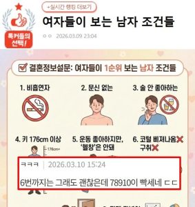2026년 버전 여자들이 보는 남자 조건들.jpg 댓글이 더 살벌하네…ㄷㄷㄷ